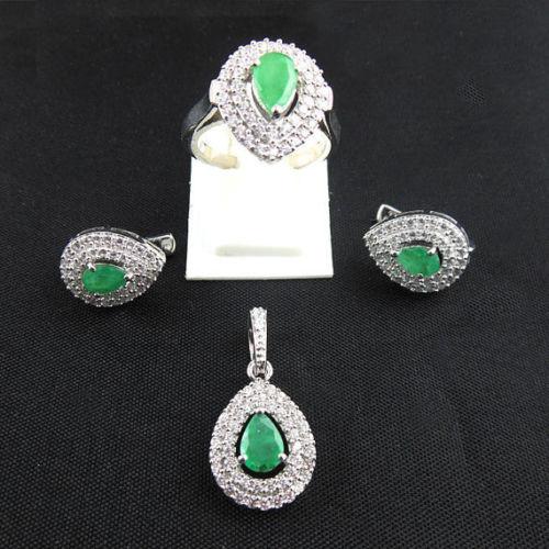 Pendant,92.5 Sterling Silver Ring,Earring Emerald ...